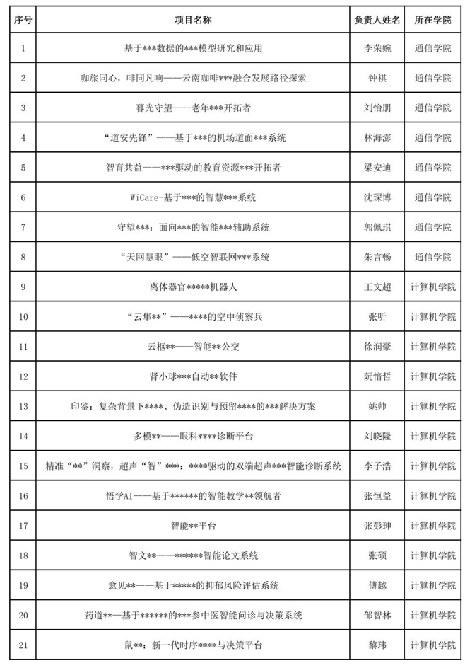 经评审,最终通信学院8个项目、计算机学院13个项目脱颖而出,将推荐至校赛复赛。现将推荐情况公示如下: